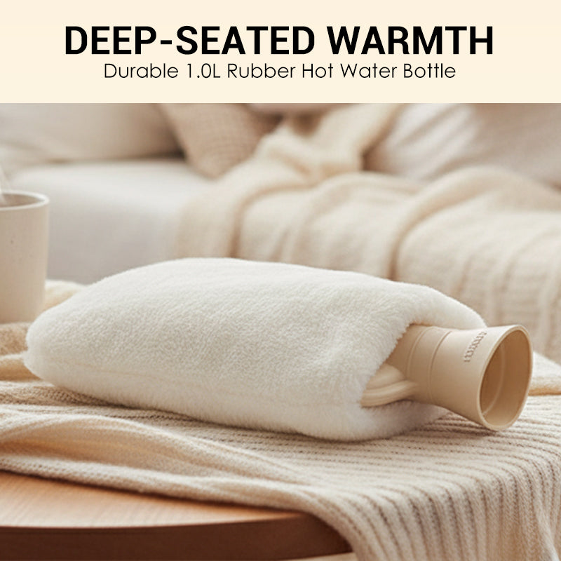 VERSATILE COMFORT & LONG-LASTING HEAT - With a spacious 1L capacity, this hot water bottle provides soothing warmth to the abdomen, neck, or back. Its generous size ensures extended heat retention for lasting relief and comfort in various situations.