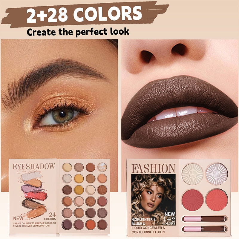 ALL-IN-ONE FACE MAKEUP SET - Not only does it include eyeshadow, but it also combines blush, highlighter, and lip gloss in a stylish palette design. Save time and effort, making makeup application effortless.